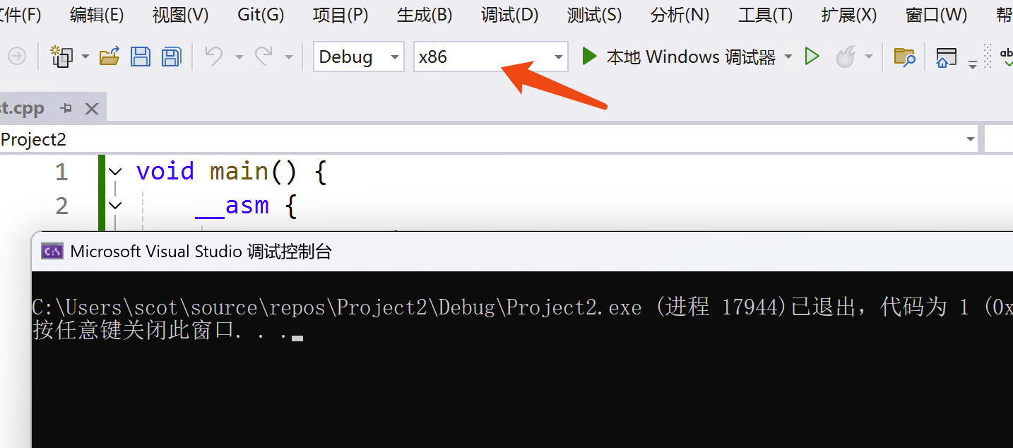 基于cpp实现汇编(内敛汇编),注意cpp实现的汇编只支持32位的,不支持64位的, 实现方式如下: