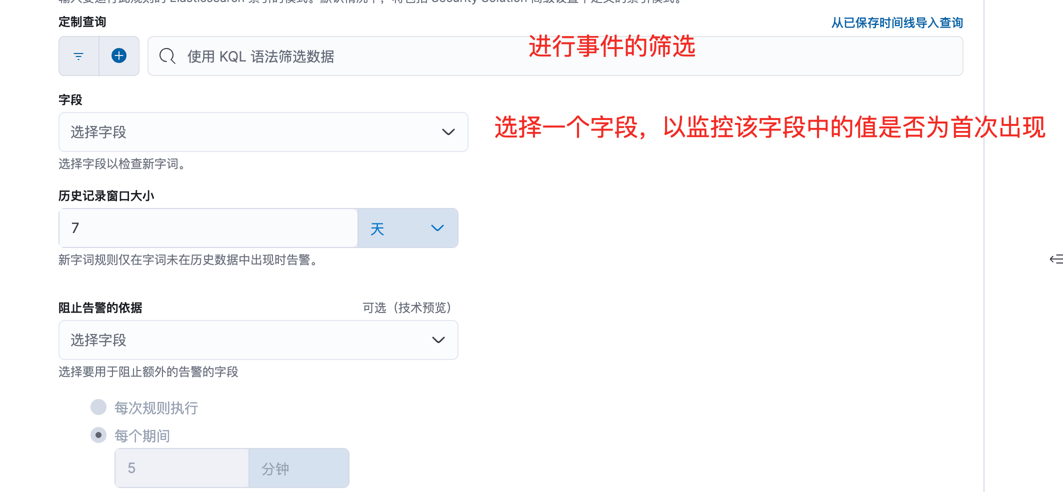 event_category where condition # event_category 默认使用ECS标准的event.category,如果event_category为any的情况下,表示匹配任意事件类型如果需要替换需要在API中设置event_category_field的值,如下