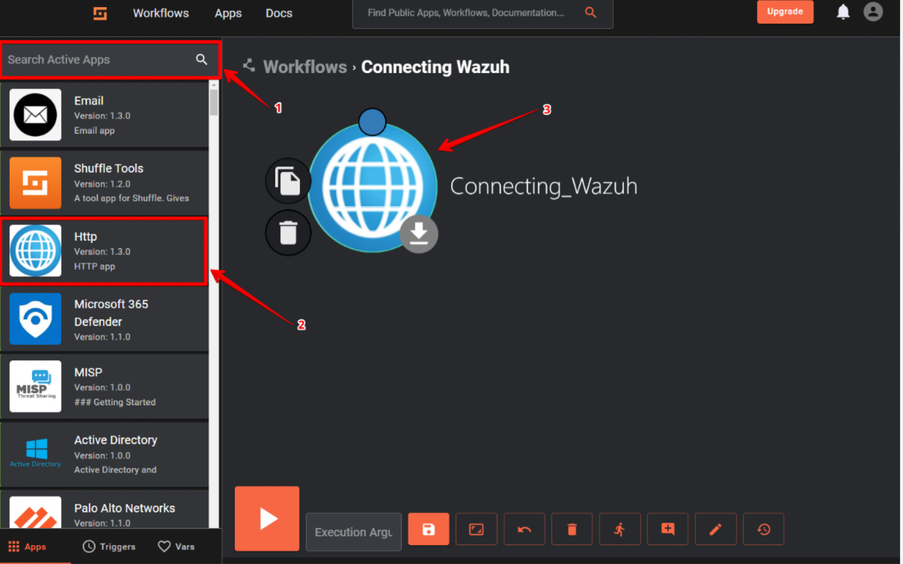 工作流设计器:Shuffle的核心部分,允许用户将应用程序和默认应用(HTTP和Shuffle工具箱)组合在一起,实现无限的自动化可能性。